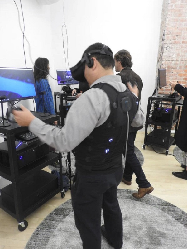 Venture Beat‘s Dean Takahashi went hands-on with exoskin while jacked into a High Fidelity nightclub using an Oculus Rift, saying that he and another journalist “spent some time touching each other, and I could feel the sensations of touch on my torso and back via the haptic sensors on the vest. It was a buzzing sort of feeling.”